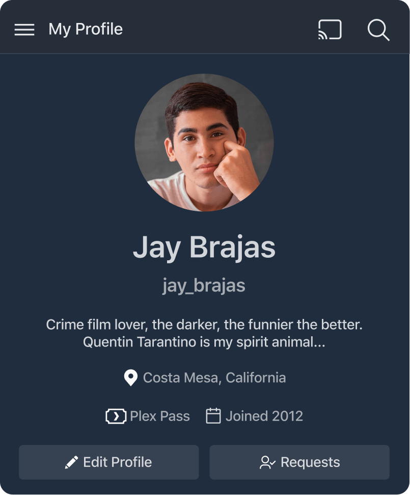 See what films and shows your favorite actors are in (and add them to your Watchlist) without ever leaving Plex! With Discover Credits, it’s all united into a single page, including which of their titles are available in your personal media libraries, on demand, or elsewhere via Discover.